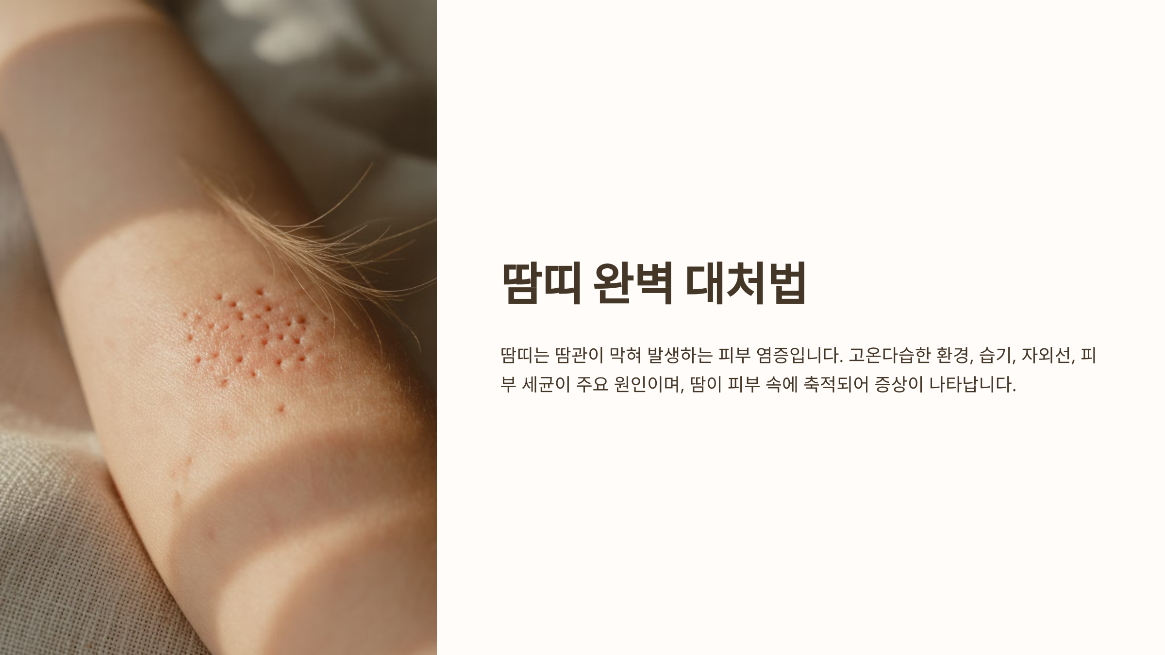 정리하면 땀띠는 '더움'보다는 '열과 땀의 축적 + 마찰 + 통풍 부족'의 결과예요. 이 3가지만 조절해도 땀띠를 상당 부분 예방하거나 개선할 수 있어요. 🔥