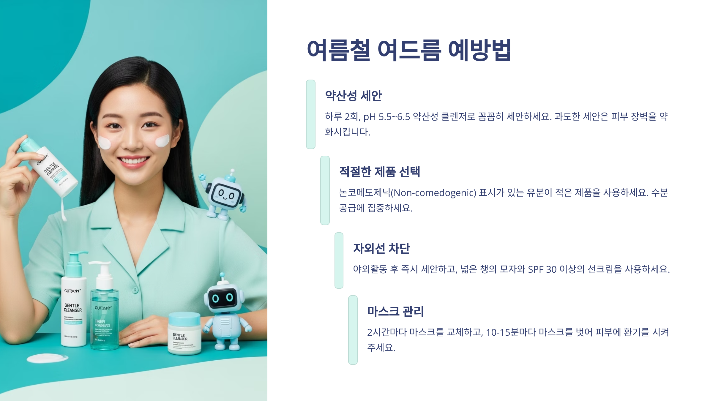 내가 생각했을 때 여름철에는 스킨케어보다 '생활습관'이 더 큰 영향을 미치는 것 같아요. 땀을 흘리자마자 닦는 습관, 세안 후 수분을 채워주는 행동들이 오히려 여드름 예방의 기본이 될 수 있어요.