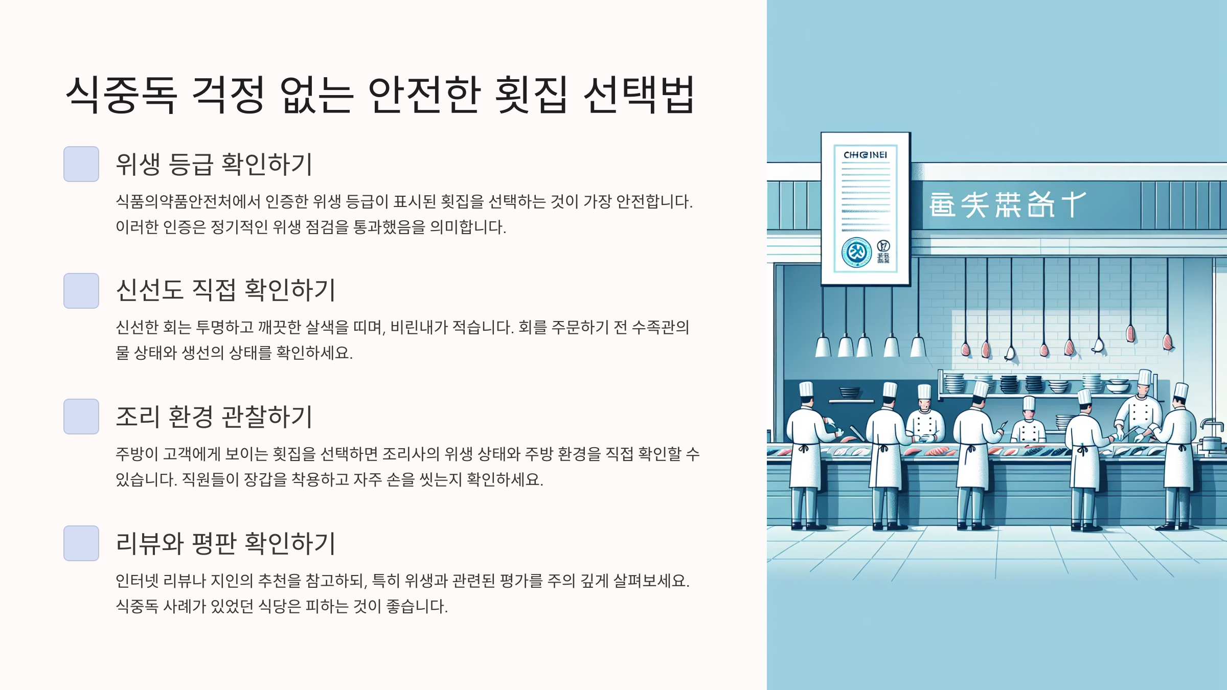여름철에 회를 먹을 때는 어디서 먹느냐가 정말 중요해요. 횟집 선택만 잘해도 식중독을 예방할 수 있답니다. 믿을 수 있는 곳에서 먹는 게 가장 안전한 방법이에요.
