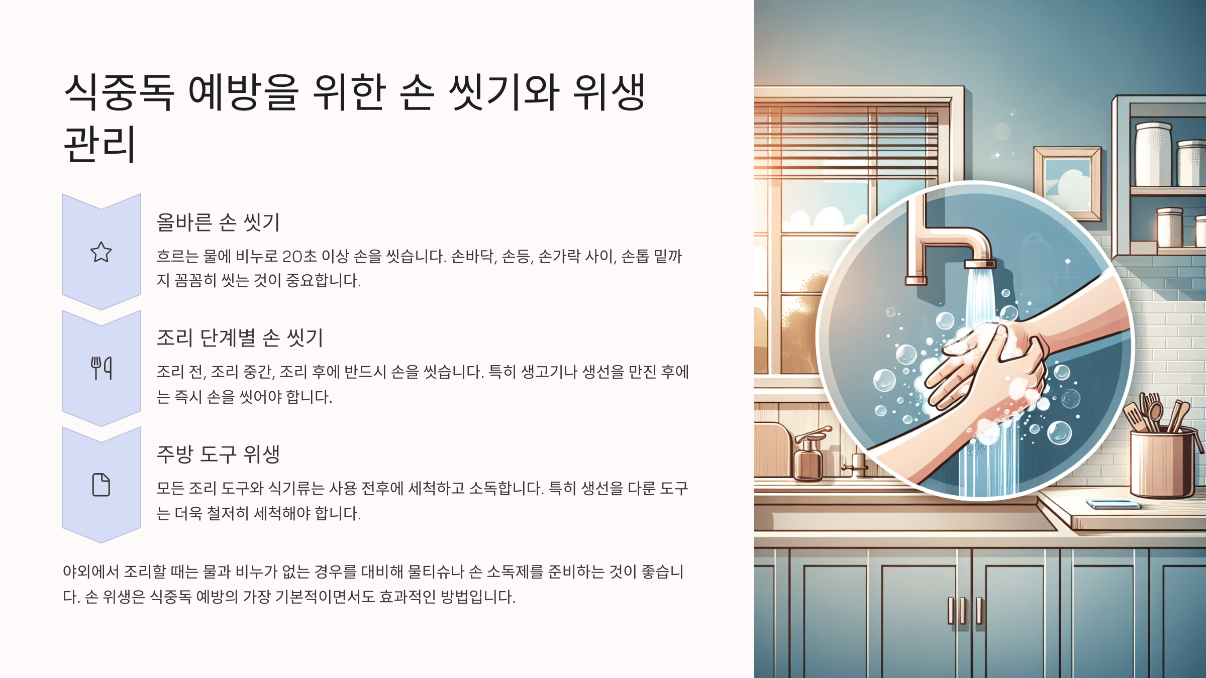 회 먹을 때 위생이 얼마나 중요한지 알고 계세요? 손을 깨끗하게 씻는 것만으로도 식중독 위험을 크게 줄일 수 있답니다. 특히 조리 전과 조리 중 손 위생은 정말 중요해요!